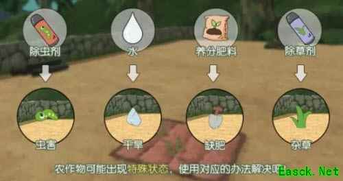 如果除虫剂等材料在使用过程中不够了怎么办呢?别担心,除虫剂、养分肥料和除草剂都是可以在手机—杂货店里购买到的~ 小贴士: 1.当农田上方漂浮着小铲子,即为缺肥状态,可使用粉色的特级喷雾器,选择养分肥料作填充物为农田施肥 2.在田里放置青蛙可达到除虫效果 获得方式:在稀有虫点使用高级虫网可有一定几率捕捉到 生效区域:一只青蛙可作用整个场景(所有区域) 时效:12小时 3.在田里放置肥堆可预防农田缺肥 获得方式:可在加工台制作 生效区域:一个肥堆可作用整片区域 时效:12小时