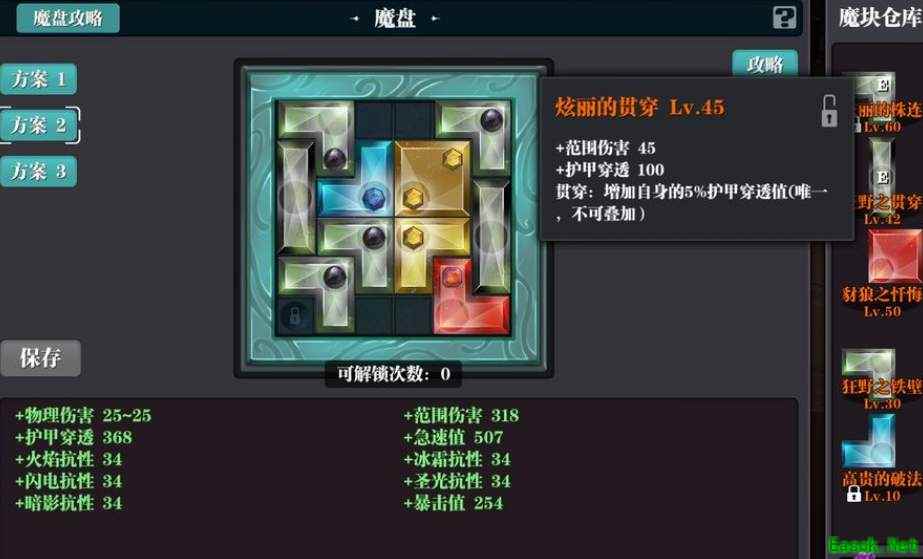 《魔渊之刃》冰目之蝶法盘搭配推荐1、冰目之蝶法盘搭配 冰目之蝶也被玩家们成为背刺套,拥有减伤和恢复能力,伤害不算突出,相较于法师要逊色一抽。魔盘建议刺客大师伤害拉满,可以参考下图的两种搭配。 因为套装本身可以减少60%破甲所以不需要刻意堆太高的破甲属性。
