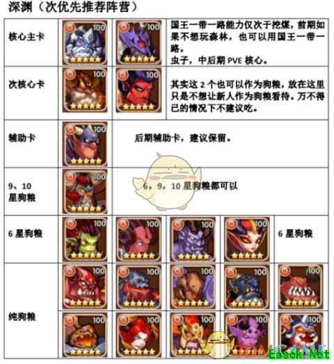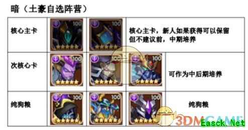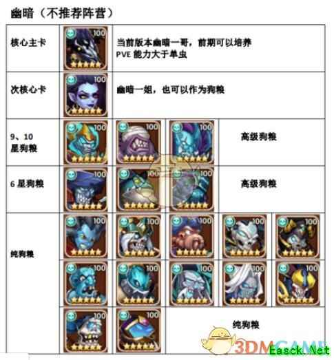 6色阵营阵营,分别是两个贵族阵营:暗影阵营、圣光阵营;和四个平民阵营:堡垒阵营、森林阵营、深渊阵营和幽暗阵营。 暗影阵营 暗影阵营推荐黑暗阿辛多,这是一个来自地狱的法师,带给带给敌人死亡和恐惧,是很强势的后排!