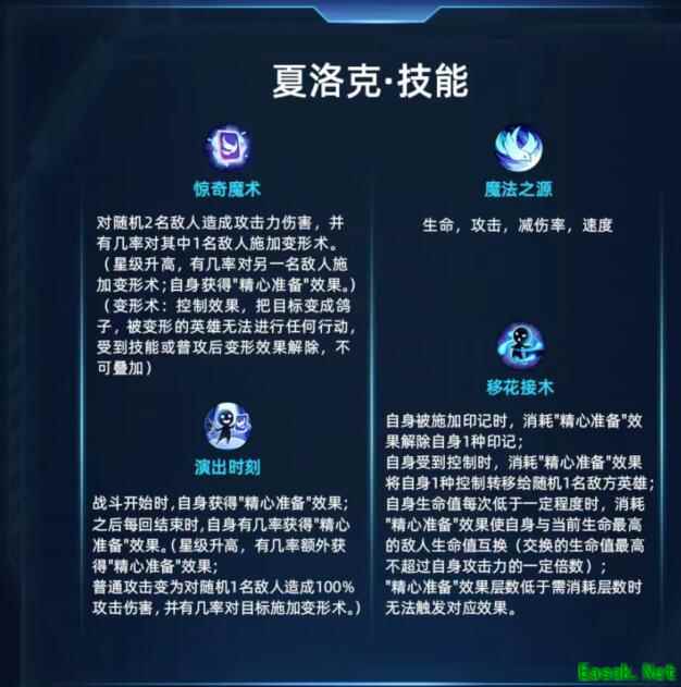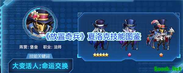 《放置奇兵》夏洛克技能图鉴夏洛克 阵营:堡垒 职业:法师 技能关键词:大变活人,命运交换