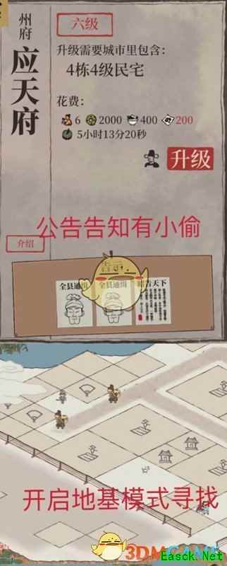《江南百景图》抓小偷攻略一、注意公告,观察是否有小偷出没,打开地基模式寻找。