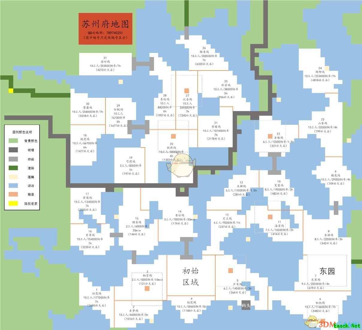 《江南百景图》苏州府地图设施一览苏州府的很多设施都在图上著名了,想找各个区域的朋友可以参考。