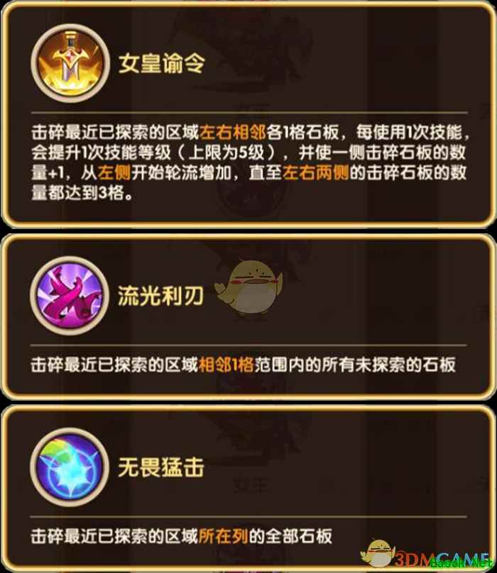 三位英雄各有一个迷宫技能,所呈现的效果各不相同。