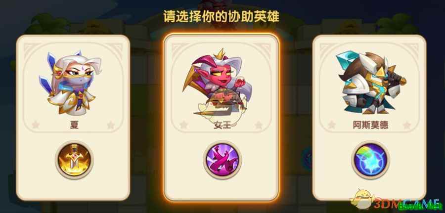《放置奇兵》迷宫冒险活动玩法攻略【协助英雄】 进入天空迷宫,首先会弹出协助英雄选择界面,一共有三位协助英雄。