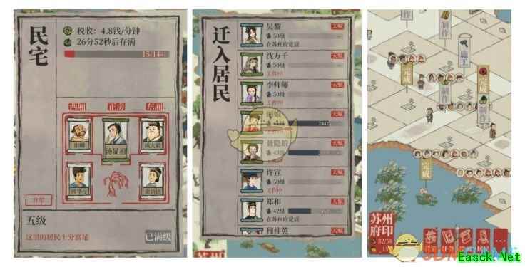 《江南百景图》居民工作内容查看方法特殊居民:在部分特殊居民被安排工作的时候,可以点进没被安排工作的特殊居民的民宅中查看,被安排工作的居民是点不动的。 点进去之后是可以看到像中间的列表一样的界面,就可以知道哪个人在没在工作。 当所有人都工作之后,只能开启地基模式查看,需要你知道特殊居民的小头像是怎样的(这个玩几天就能记全了)