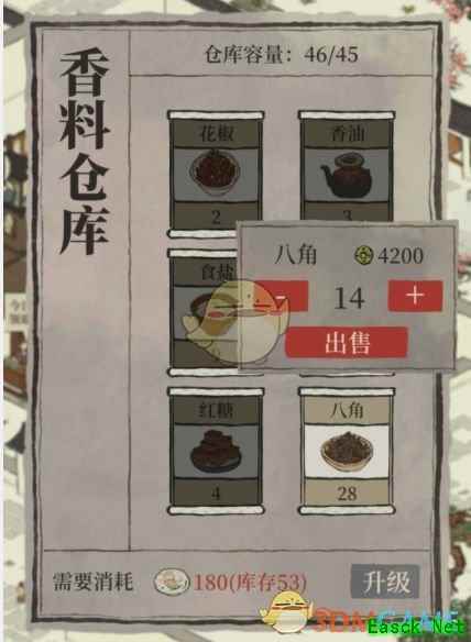香料仓库满了怎么办? 点击想要卖掉的香料就可以卖了,或者用好评空盘升级来提升仓库容量也可以。充值月卡之后香料仓库容量翻倍。