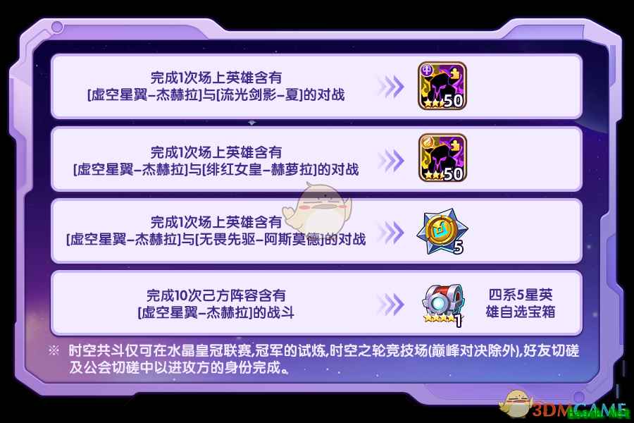 活动期间,完成时空共斗任务需求,即可获得对应奖励! 前3个任务,对战双方任意一方含有任务所需英雄即可; 四系5星英雄自选宝箱与辉煌圣殿同步。 以上就是小编整理带来的《放置奇兵》时空共斗活动玩法介绍,大家还喜欢吗?更多精彩内容,请点击关注手游网,小编将持续为您更新! 本文内容来源于互联网,如有侵权请联系删除。 |
