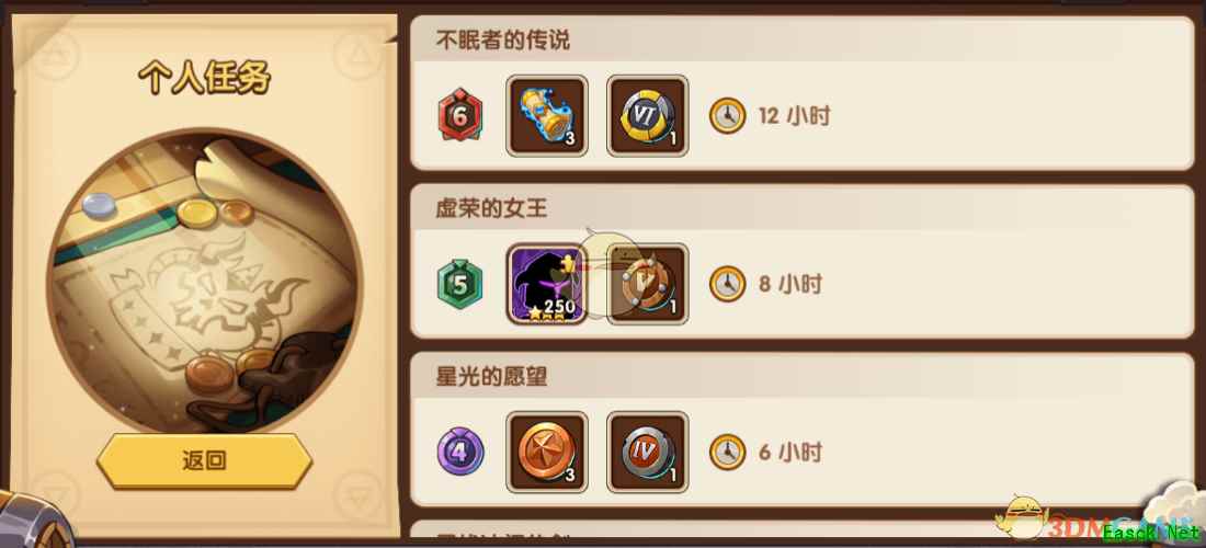 点击进入酒馆,我们可以发现界面有了明显变化,酒馆任务分成了两个部分:协作任务、个人任务。 个人任务即改版之前的玩法,只需自行派遣任务所需英雄即可。