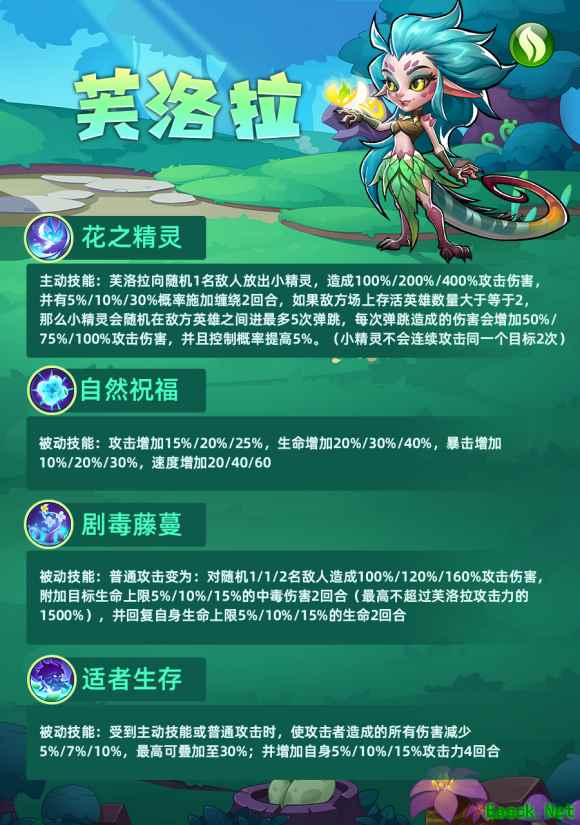 芙洛拉(蜥蜴女):侵蚀表现较强,可搭配鸟人通关封印20,老玩家酌情做。 以上就是小编带来的《放置奇兵》芙洛拉技能图鉴介绍,更多精彩内容,请点击关注手游网,小编将持续为您更新! 本文内容来源于互联网,如有侵权请联系删除。 |