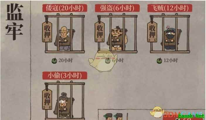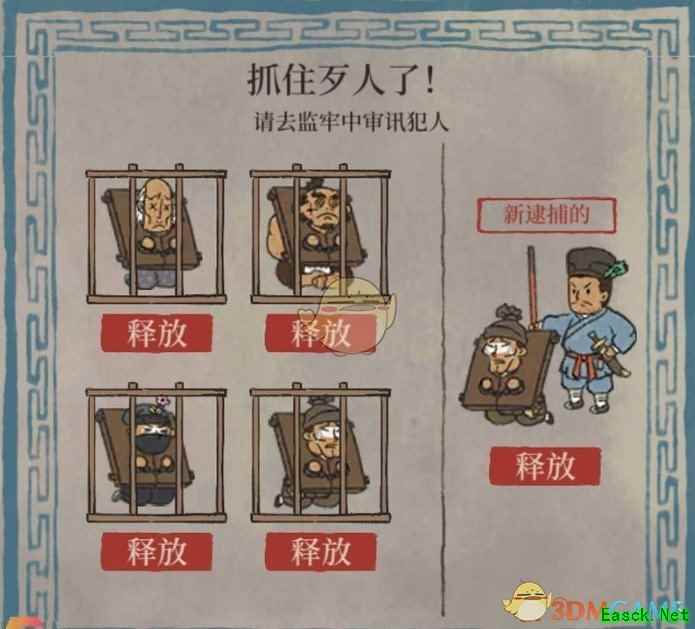 狱卒数量增加方法: 在地图上的随机位置会刷新盗贼,盗贼的数量、外形特种可以通过应天府的“告示栏”中的通缉令查看。 在地图上点击盗贼就可以完成逮捕,很简单,其实个人觉得这里可以多一点互动,比如说多点击几次,或者触发一些反抗、战斗的小桥段。