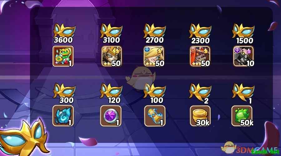 2、活动期间,战役挂机有几率掉落【舞会假面】,掉落截止到7月2日上午8点(UTC/GMT 8) 3、使用【舞会假面】可在舞夜梦回中换取如图奖励。