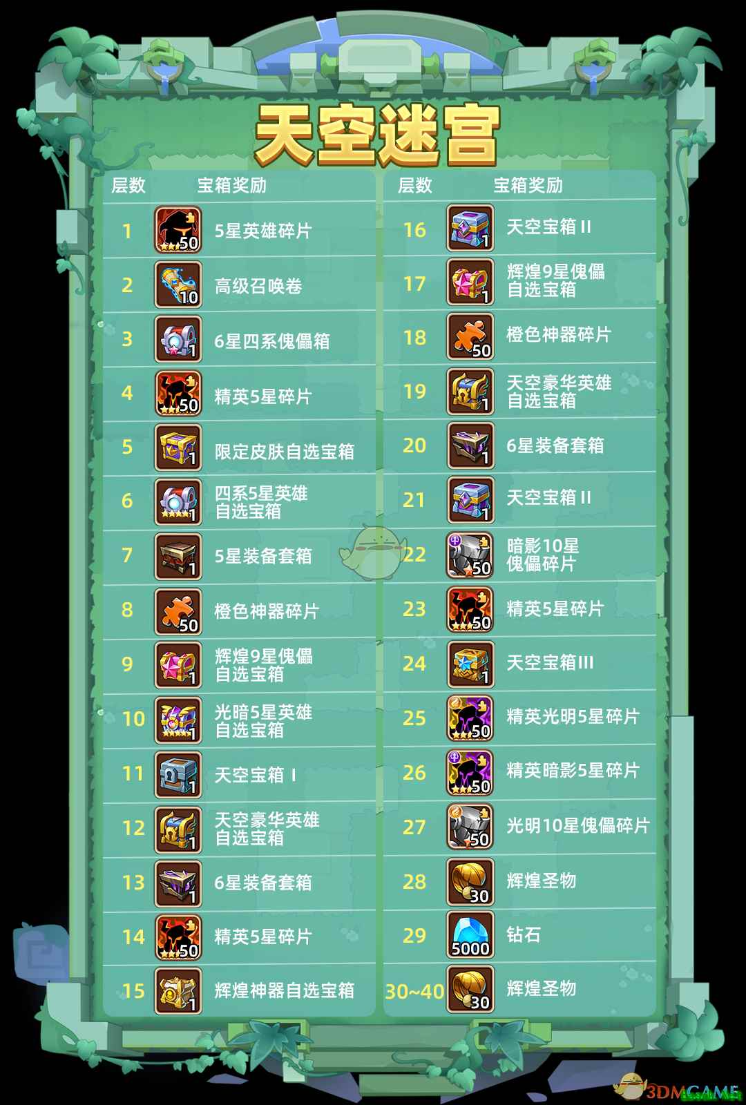 活动公告 1.活动期间,通过使用秘银镐击碎石板来探索迷宫,可获得隐藏在石板下的奖励!每通过一层迷宫,即可获得对应奖励宝箱,通过层数越多,宝箱奖励越丰富~