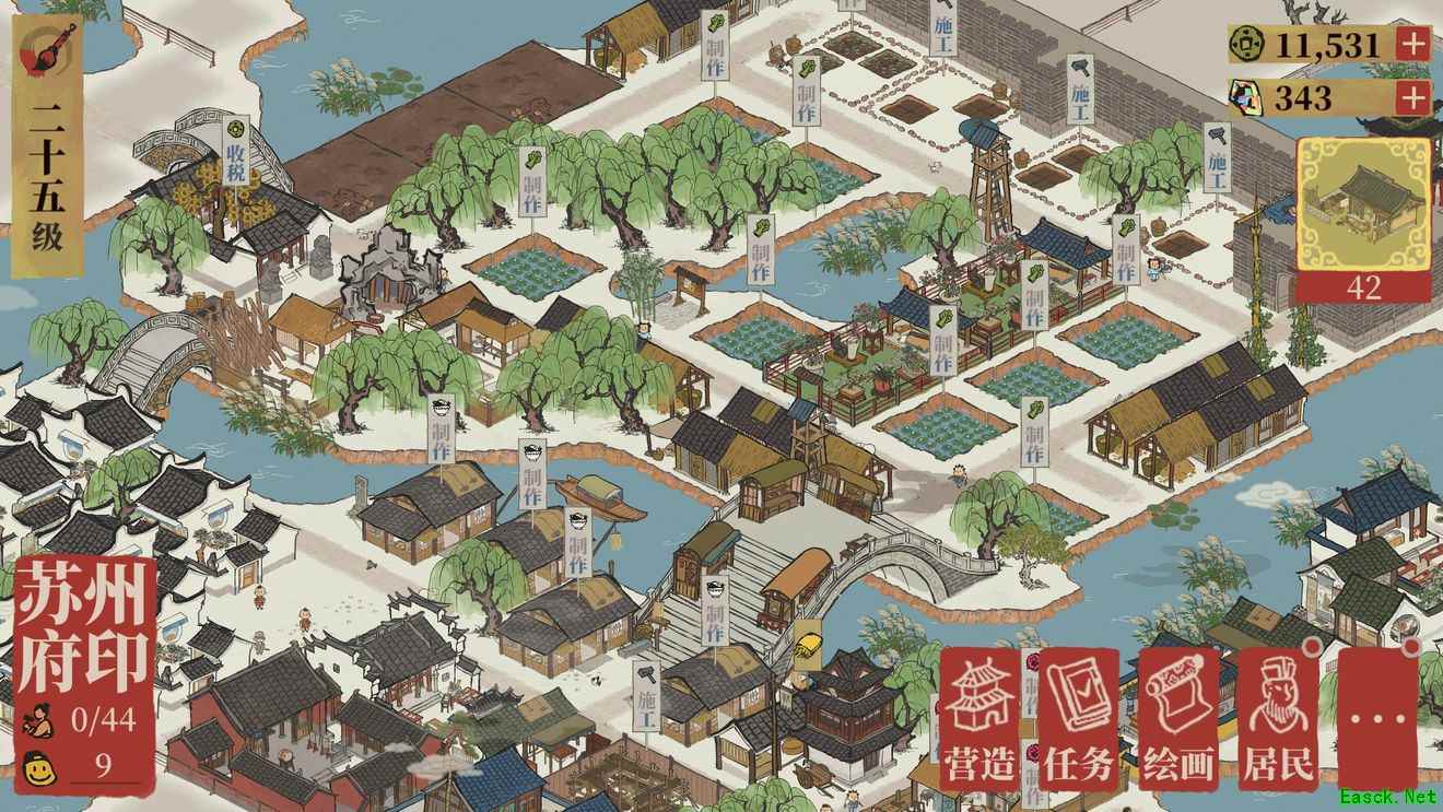 3、应天府 当你在肝苏州的时候(就像你第一次打开游戏出现在应天),应天府也不能闲着。你可以安排高制作的特殊居民去生产制作,普通居民种菜、造木或者赚钱。 就像你刚开始建设应天一样,苏州初期也是花钱花的快,但没人挣(都去生产了)。所以需要应天这时的挂机产钱来支撑消耗。 以上就是小编整理的关于《江南百景图》苏州准备物资介绍的全部内容。更多游戏攻略请持续关注手游网! |