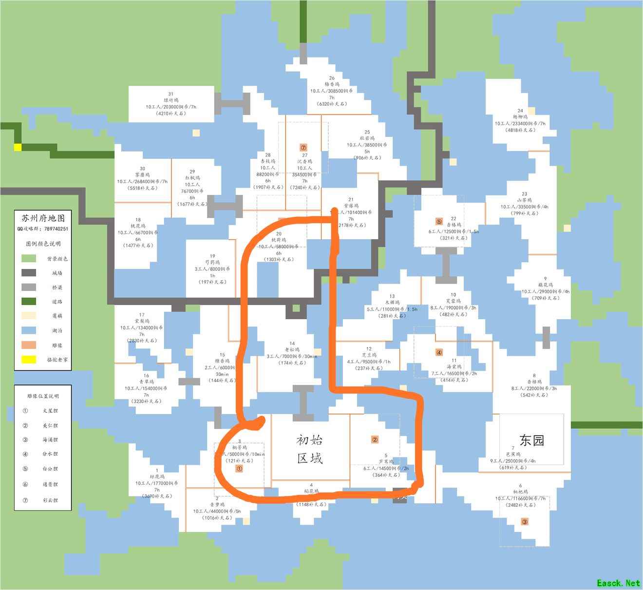 苏州开荒及开地技巧分享刚到那里,潘安,文徽明,董其昌。三兄贵挺好用,第一批物资要一船木头,因为仓库初期要木头。 6个仓库要拉满的。所有建筑的一血都给潘安,一个50蔬菜,文徽明接着升级,董其昌主要是天赋好。 初期就是住在一级餐厅,毕竟苏州的粮食缺口太大了,蔬菜,养鸭场,过过任务就行了,初期主要的粮食还是靠应天运。 开地建议这样,右下角的林场初期用的不多,旁边对养蚕场有加成的这一块儿要开开,就开始。