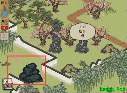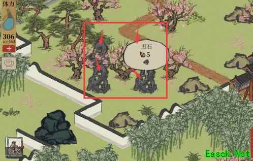 《江南百景图》四丑位置分享一、位置介绍 四块丑石是围墙外面的四块小黑石。