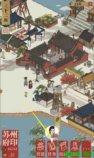 《江南百景图》云岩寺领取方法介绍1.首先我们需要完成桃花坞这个探险剧本,这个是苏州府探险剧本的最后一个章节,完成时候才可以领取云岩寺; 2.然后我们回到自己的城市当中,点击下面的任务按钮;
