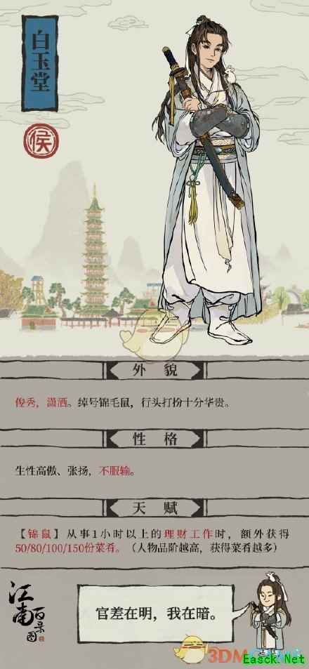 以上就是小编整理的关于《江南百景图》白玉堂人物介绍的全部内容,更多游戏攻略请持续关注手游网! |