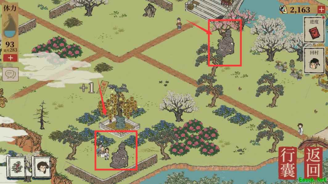 二、小树林 1、修复两个财神神像,获得泽水困卦和地火明夷卦。