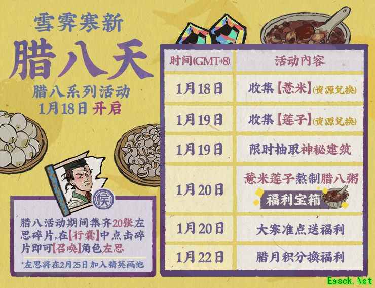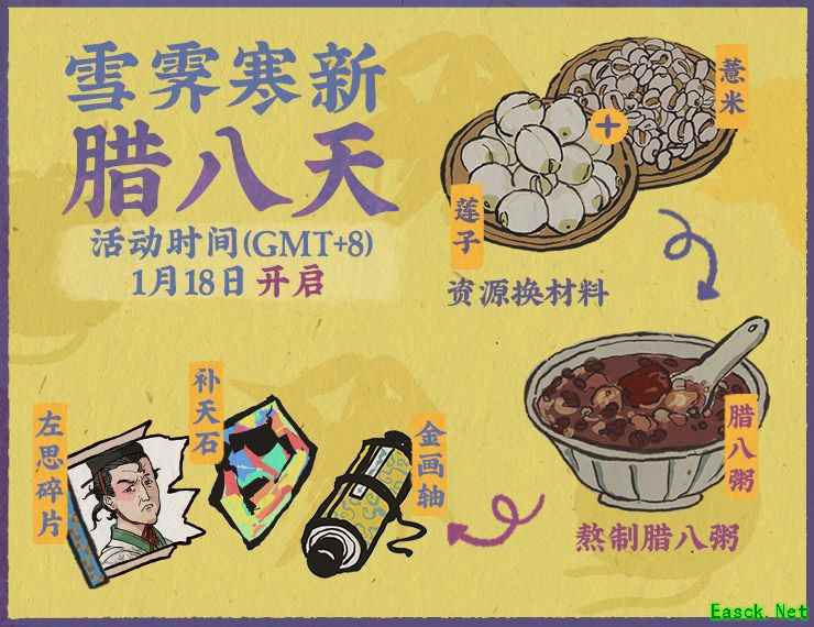 雪霁寒新腊八天资源兑换活动介绍: 此次腊八天系列活动将分为收集食材、熬制腊八粥、兑换福利三个过程。