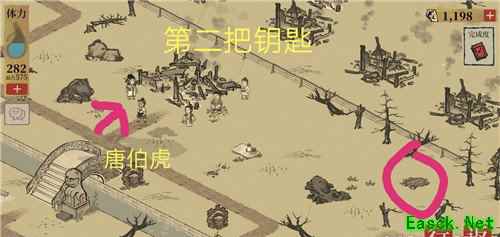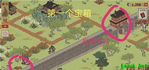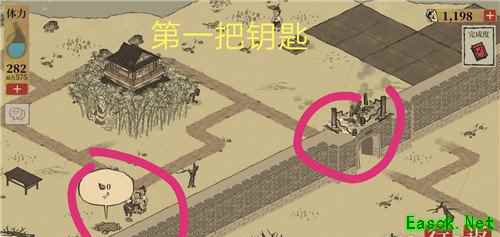 《江南百景图》阊门宝箱钥匙位置介绍第一把钥匙在回忆出口的左边。