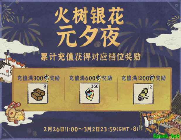 《江南百景图》火树银花元夕夜玩法攻略一、活动时间 2月26日11:00—3月2日23:59