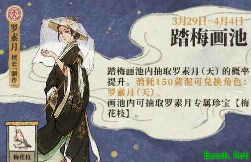 3月29日11:00至4月4日23:59,【踏梅画池】开启!天级居民【罗素月】概率提升。