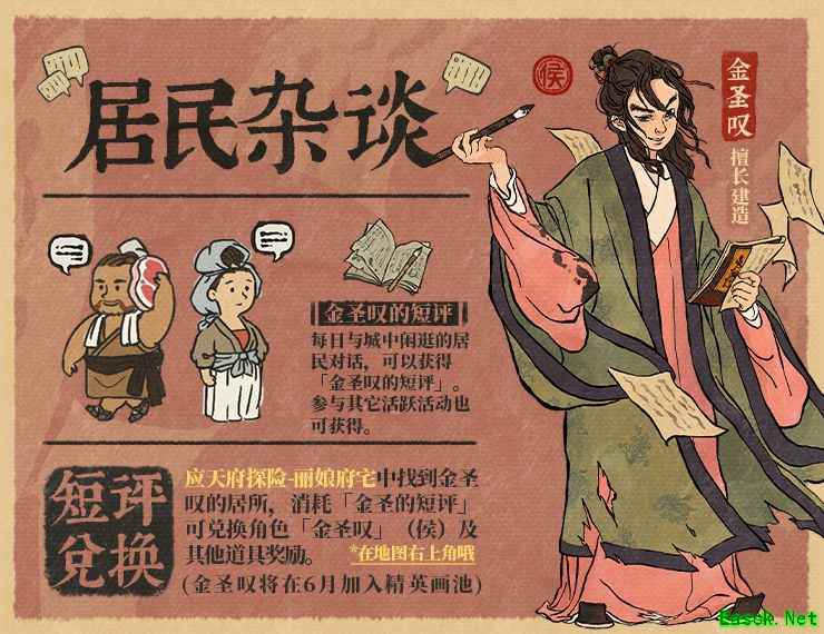 江南百景图中即将上线全新居民金圣叹,很多小伙伴不知道获取金圣叹的道具金圣叹的短评怎么获得,今天小编给大家带来了《江南百景图》金圣叹的短评位置介绍,感兴趣的小伙伴一起来看看吧。