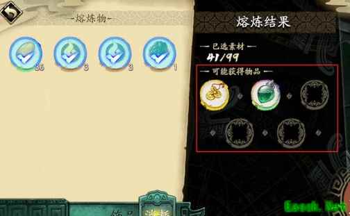 4、添加熔炼物后可在右侧预览熔炼结果。