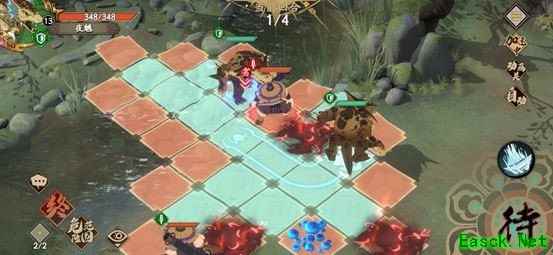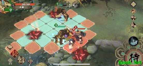 6、残血的己方夜魑走下来,到陷阱右边,这个时候站位就是陷阱边上一边一个,敌方侠客会走到陷阱上来击杀我方残血,回合结束后直接触发陷阱,游戏结束