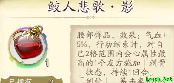 没有优点,可以毫不犹豫地分解不痛心~适合那些刚好缺材料换商店自选的非洲侠客。还期待什么呢,防御魔抗人下人,这件装备甚至比某些防御极还不如 3.鲛人悲歌·影 腰(咒师、祝由、羽士限定)