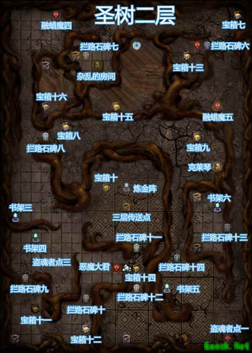 《地下城堡2:黑暗觉醒》图25书架地图位置大全“书架”地图据点汇总 1、圣树一层(6,25)书架一,战斗,获得“地狱苔藓”*1,“实验室的钥匙”*1。 2、圣树一层(2,28)书架二,通过圣树二层(1,33)向下的通道,7000魔力解除封印消耗2000食物,继续前行进入该地点。与卡琳对话。 3、圣树二层(1,21)书架三,获得石门的钥匙。 4、圣树二层(3,23)书架四,“石之心”*1。 5、圣树二层(16,28)书架五,烛火元素*1。 6、圣树二层(21,20)书架六,在圣树二层炼金阵处制造符文透镜后,击败圣树一层融蜡魔一,随后在圣树一层(19,19)隐蔽的通道,7000技巧打开石锁,花费2000食物继续前行,进入该房间。获得“石弩设计图”*1。