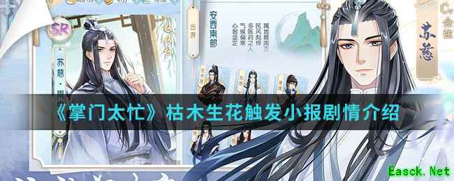 在掌门太忙手游中枯木生花触发哪些小报剧情呢?枯木生花作为游戏第一章的解忧阁小报支线剧情,我们可以在23级的时候进行解锁,而这一支线剧情中我们将可以触发【恒定】、【不由人】、以及【黄泉碧落】这三个不同的结局,那么想知道枯木生花触发小报剧情的就跟随小编一起来看看吧。