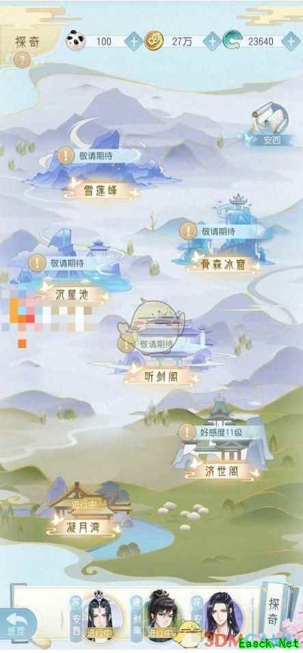探奇: 探奇这个感觉不太好理解,其实这就是一个接受委托完成委托获得奖励礼物的玩法流程。我们在探奇玩法中,可以选择一个地点,然后完成对应的委托事件就可以获得奖励了,奖励中的货币可以用来购买服装以及装饰,而礼物道具则可以用于赠送喜欢的男主。