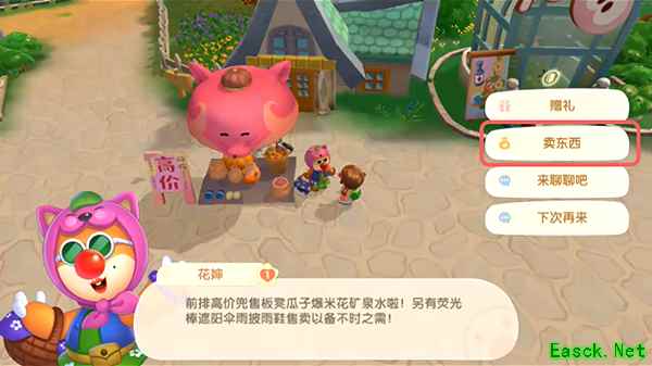2.然后和花婶对话,选择【卖东西】;