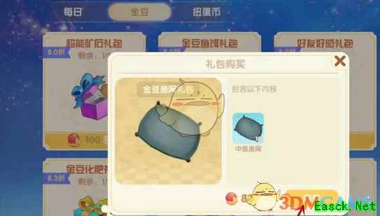 大家打开游戏后,点击页面左上角的商城,进入商城后,点击【礼包】,然后点击【金豆】,可以看到有个【金豆渔网礼包】,价格是80金豆,购买后可以获得10个中级渔网。