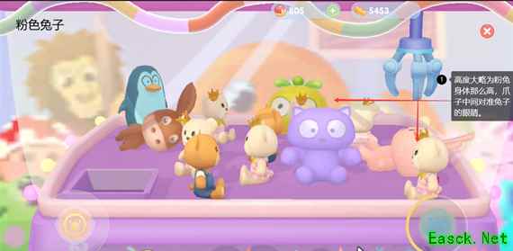 高度大略为粉兔身体那么高,爪子中间对准兔子的眼睛。