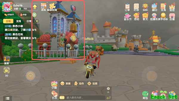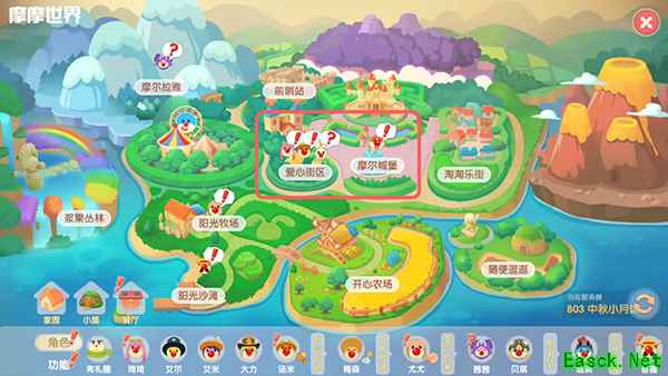 1.首先通过摩尔庄园来到【爱心街区】或者【摩尔城堡】;