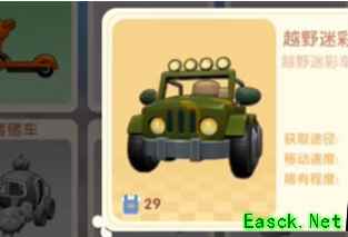 需要我们一共收集29套服装,然后就能获得【越野迷彩车】,具体需要收集哪些服装,我们可以通过查看图鉴了解。