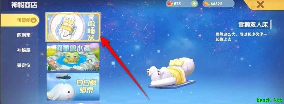 3、点击一下雪獭双人床,准备足够的雪獭后点击交换即可兑换。