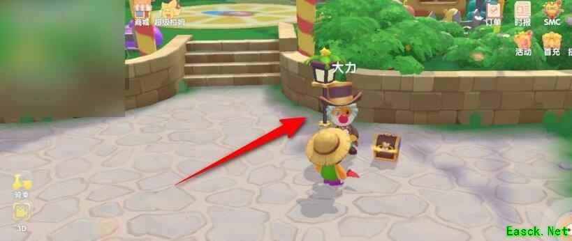 1、进入游戏与大力进行对话。