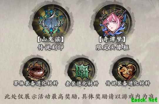 奇谭山共有7关,每天开放1关。关卡内大规模掉落全部类型的60级进阶材料(狂龙除外)和山鬼谣碎片[古谣乐灵]。可在八卦童子处消耗40枚[古谣乐灵]兑换1枚新传说刻印[山鬼谣] !