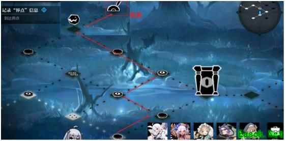 2、按照图示路线走过去把机关打开,又会解锁暗藏的迷宫机关按钮。(记得领宝箱)