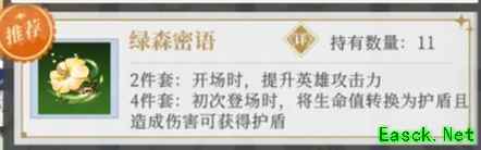 官方推荐预设是绿森密语,也就是出场扣血叠盾且造成伤害时也可以叠盾(盾量不错,但并不十分契合)