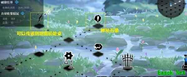 1、进入迷宫后,前往地图左侧左下角即可获得石像。这个区域的所有空间裂缝都可以传输到地图的初始点,所以不需要解机关了。