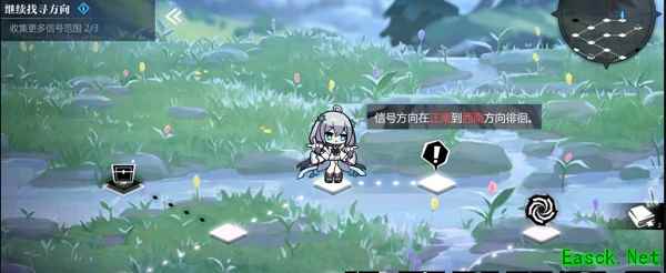 1、进入迷宫后,往左边走会获得第一个方向,获得方向后第一时间去信号塔输信号,左下角隐藏道路有宝箱别忘记拿了!