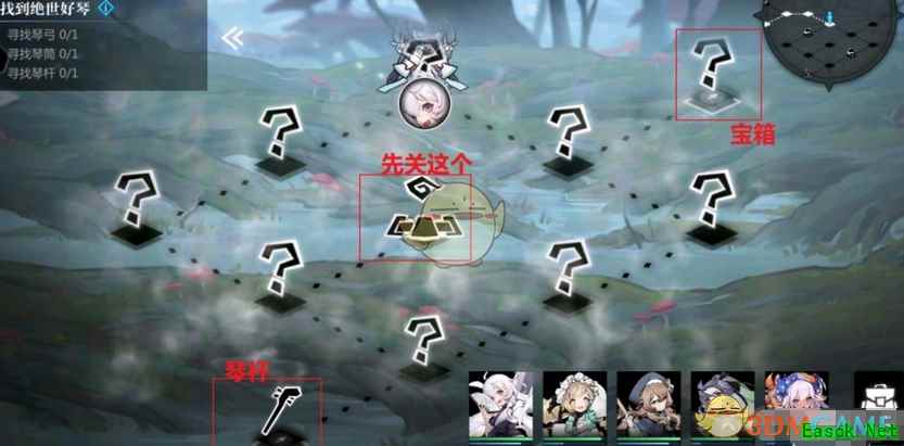 先到祭坛关大雾,然后拿宝箱和琴杆。拿到琴杆可以增加队伍10%的生命,然后传送回去。