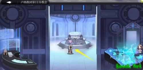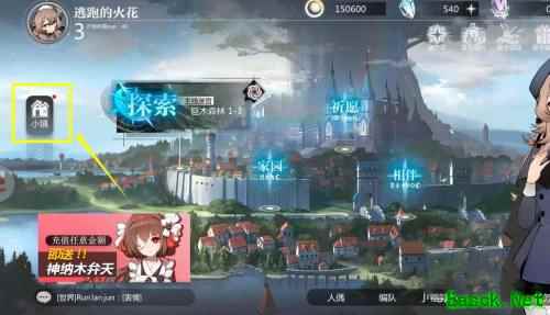 3、进入后点击头上有紫色感叹号的人,与之对话。