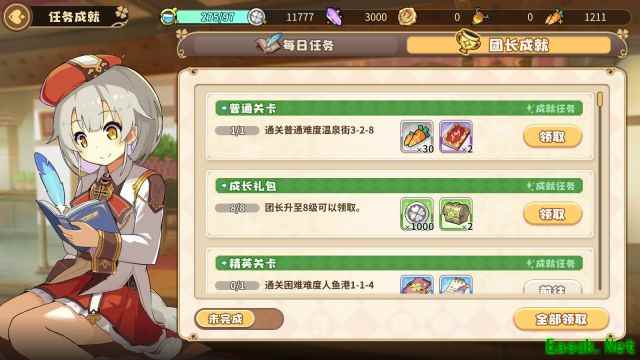 3、团长成就类似于一次性任务、成就、主线任务等,通关奖励、升级奖励、重要道具和十连赠送的精华都在此领取。