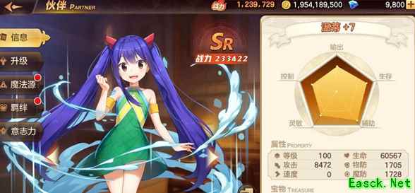 在伙伴信息中,可以查看伙伴的具体属性,专属宝物及效果、以及技能介绍。