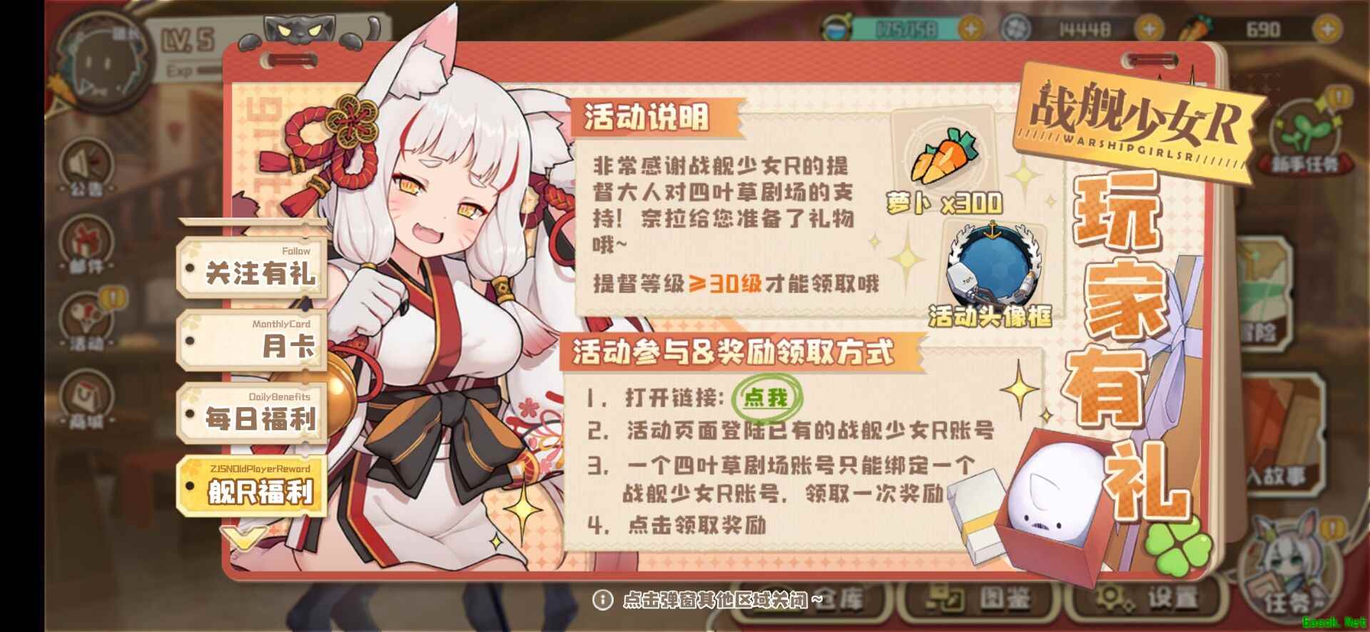 四叶草剧场舰R福利是什么?《四叶草剧场》游戏已经上线了,其中的舰R福利有很多玩家不知道,那么今天小编就给大家介绍一下四叶草剧场舰R福利一览,感兴趣的小伙伴不要错过了。